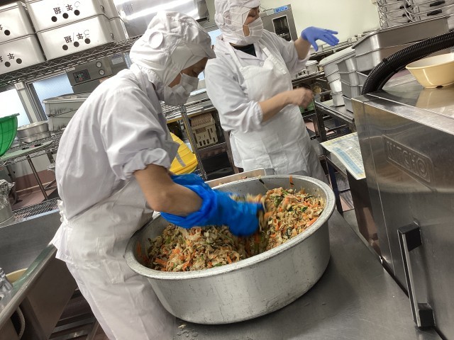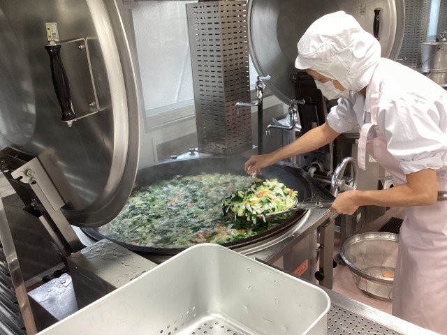 あえもののやさいも、しっかりおんどをはかりながら、ゆでています。