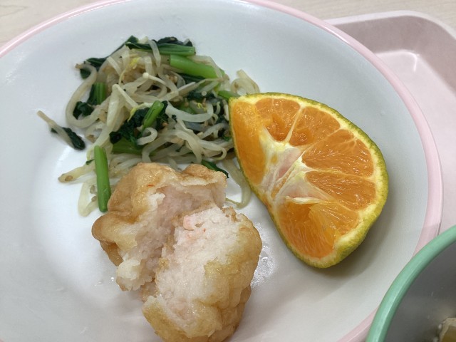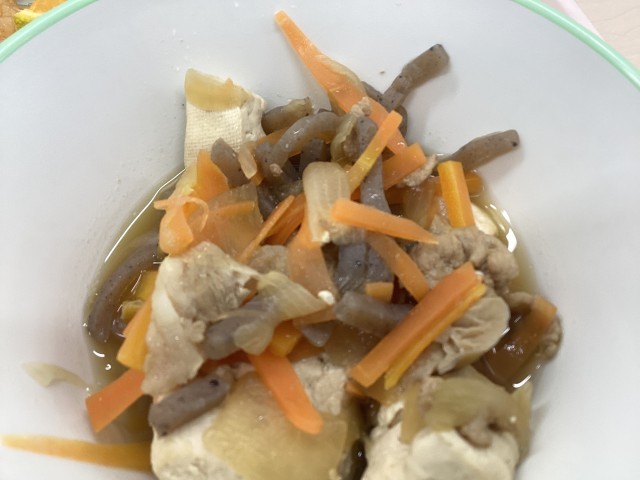 また、「しんじょう」を漢字にすると「真薯」と表記されることがあります。ヤマイモなどのいも類を表す「薯」を当て、ヤマイモが入った料理という意味が込められているのかも知れません。今日の給食は、江戸時代から続く練り物の一つでもある「しんじょう」を献立に取り入れて提供しました。
