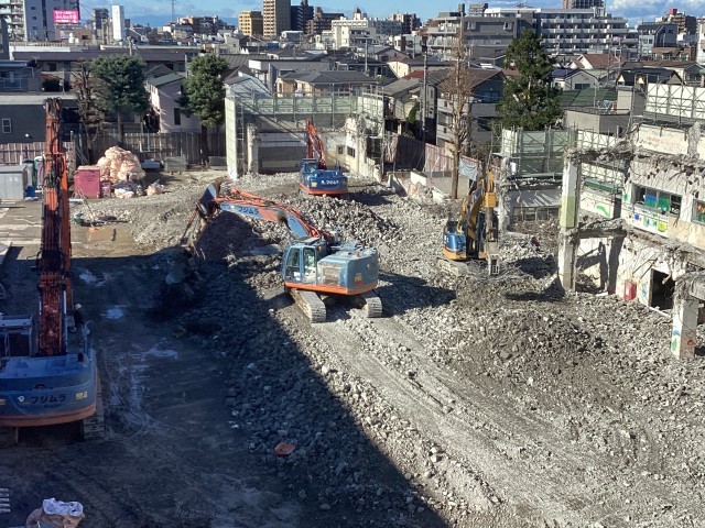西校舎の解体工事は、西側の外壁を残すのみとなりました。