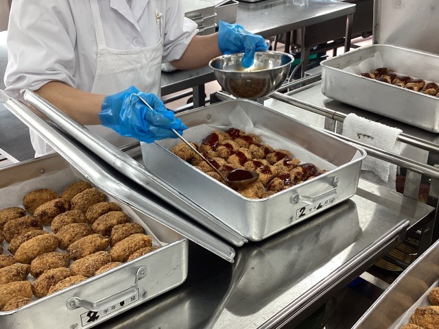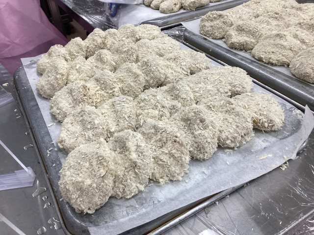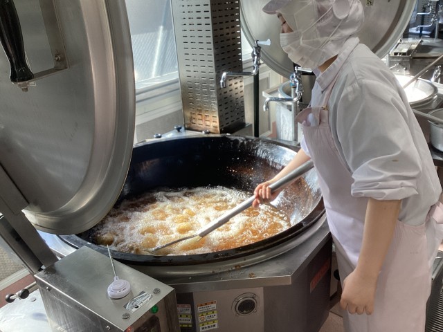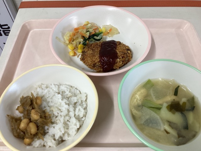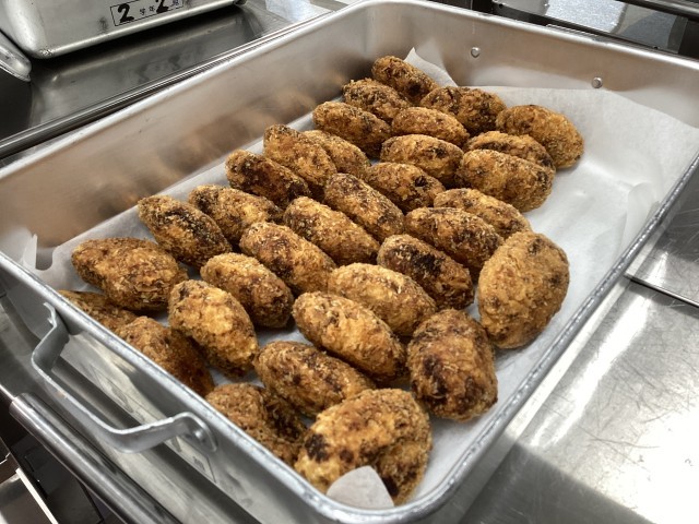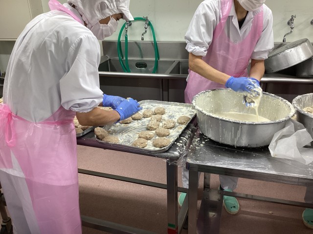 メンチカツも給食室の手作りしています。