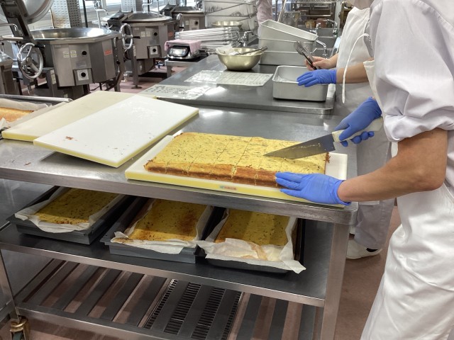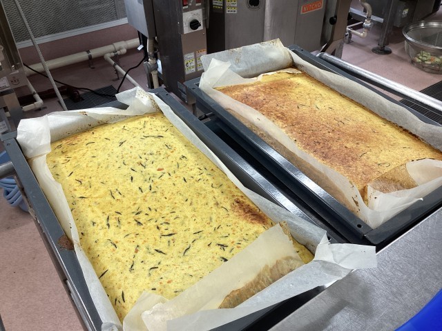 ほうちょうで、にんずうぶんにカットして、かくクラスにくばります。