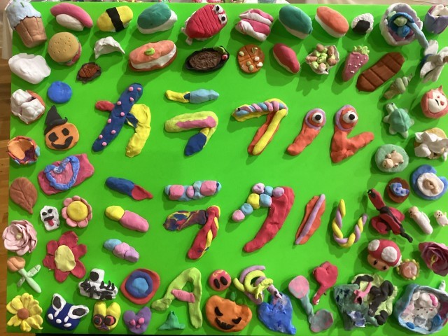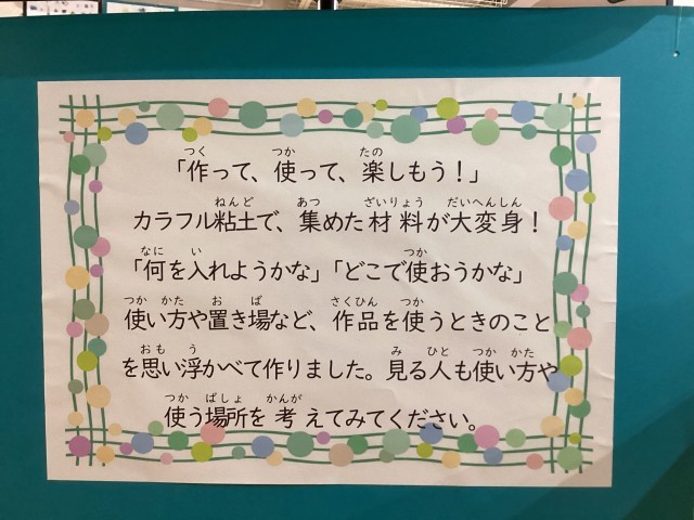 この写真は、「アートハッピーフェスタ」において、3年生の作品を展示したブースです。