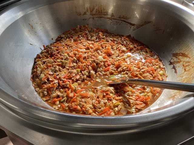 やきとりどんには、ねぎをたっぷりつかいました。