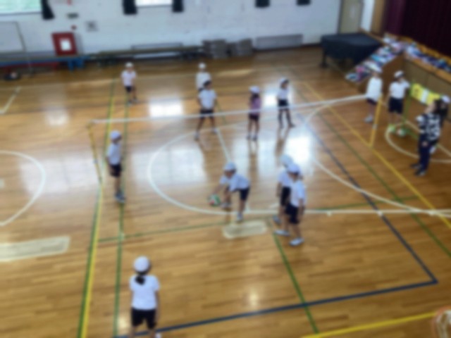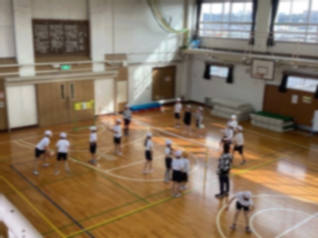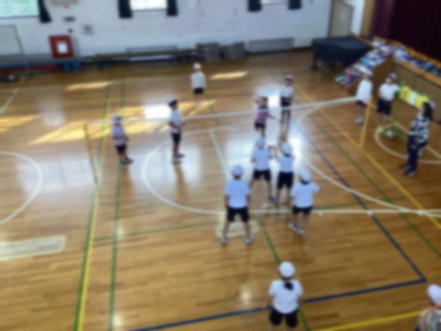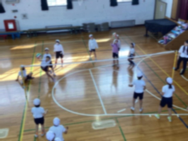 今日(2/23・火曜日)、3年生の体育の学習は、ネット型ゲームです。ネットを中心にパスやシュートをしながら相手の陣地にボールを送るゲームです。相手がボールを受け取り損なうと得点になります。このゲームは、将来、バレーボールにつながるスポーツになります。小学校の体育では、バレーボールやバスケットボールなどの要素を入れながら、全員がスポーツに参加できるよう工夫して行います。パス回しやシュートの仕方など、お互いに気づいたことをアドバイスしながら取り組んでいました。残り15分間で、バレーボールのコートを使いながらゲームをしました。