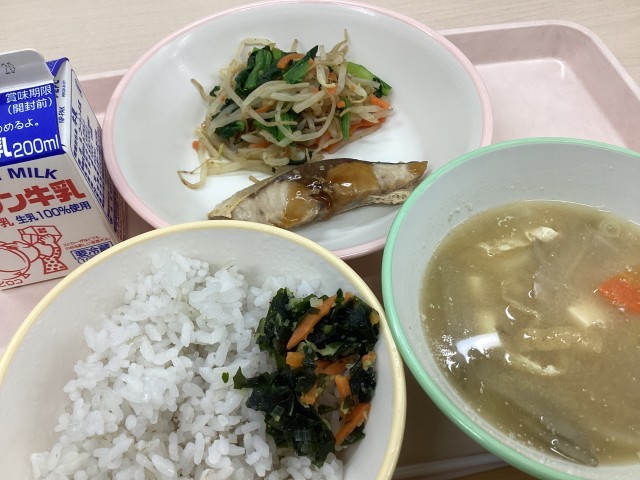 今日のメニューは、「イナダの照り焼き」に「お浸し」、「胡麻味噌根菜汁」、「わかめの香り炒め付き麦ご飯」と「牛乳」です。当初は、「ブリの照り焼き」を予定していましたが、入荷の関係で「イナダの照り焼き」に変更しました。ブリは、魚体が大きくなるにつれて呼び名が変わる魚で、一般に出世魚を呼ばれています。イナダは、幼魚から中年魚の頃の呼び名で、別名をハマチとも呼ばれます。中年魚から体調60cmを超える成魚になると「ブリ」と呼ばれます。