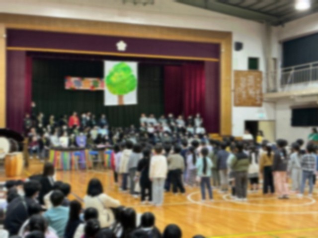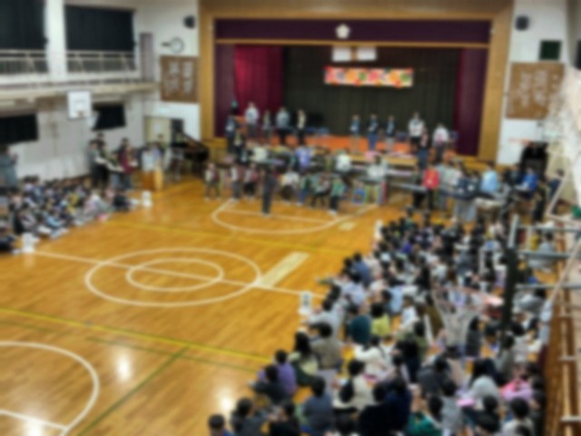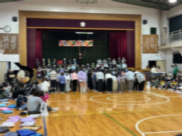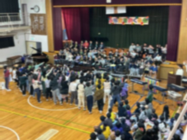今日(3/3・火曜日)、中休みの「なかよし班お別れ会」の後、思い出校舎3階の中小岩スポーツ館で、「六年生を送る会」を開きました。当日のプログラムをはじめ、司会や進行、挨拶、記念品づくりや装飾など、1〜5年生が分担しながら進めました。また、六年生は「中フェス」で発表した「情熱大陸」を演奏し、最後にアンコールもかかりました。