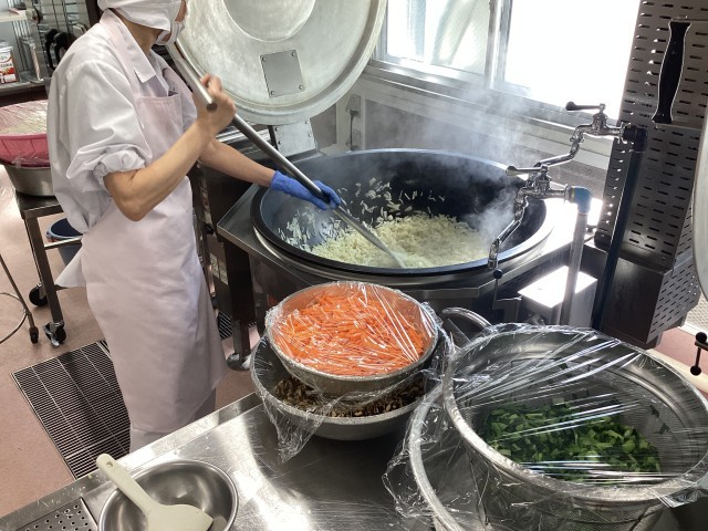 大量の野菜をカットして、じゅんびします。
