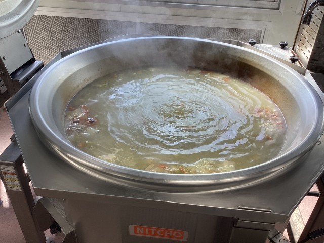 とりがらスープは、鶏の骨と、野菜くずをにこんで、つくります。