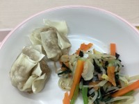 今日のメニューは、「ししゃものごま焼き」「おかか和え」「とりごぼうご飯」「かきたま汁」「オレンジ」と「牛乳」です。今日の給食は、骨まで食べられる「ししゃも」をメインに献立を組みました。
