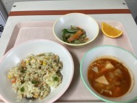 きょうは、だいずからできたしょくざいを たくさんつかっていますよ。