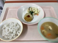 きょうは、だいずからできたしょくざいを たくさんつかっていますよ。