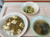 きょうは、だいずからできたしょくざいを たくさんつかっていますよ。