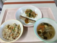 給食室には、大きなかまが5台あります。汁物を作ったり、ごはんを炊いたり、野菜をゆ...