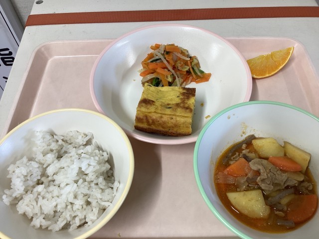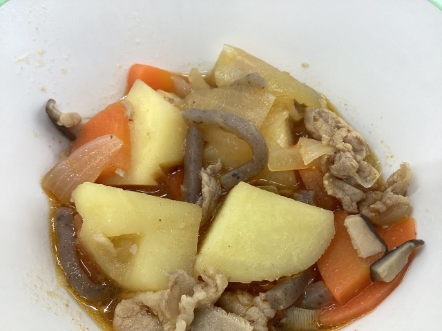 今日のメニューは、コチジャンを使い、少しピリ辛の「みそ肉じゃが」に、「ひじき入り...