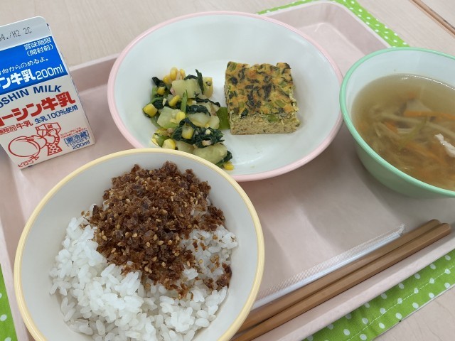 今年度、初めての給食がありました。子どもたちは給食を楽しみにしていたようで、「今...