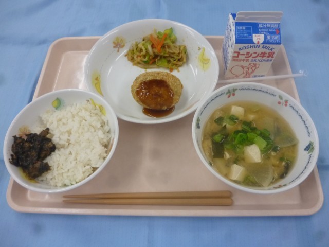 今日のお話給食は、ぐりとぐらとすみれちゃんからかぼちゃのコロッケです。