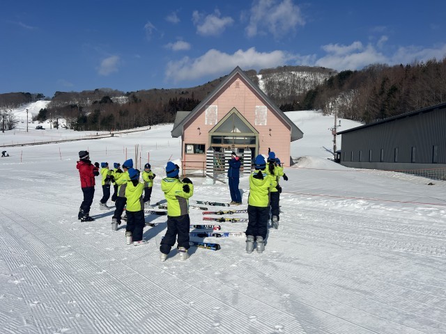 スキー場に着きました。インストラクターさんに挨拶をして、雪山に挑みます!