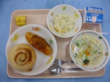11月21日 公開日 2019/11/21 更新日 2019/11/21 給 食 ・手作りシナモンロール ・牛乳 ・たらのバーベキューソース ・マッシュポテト ・かぶのクリームスープ ・バナナ いいね(0)