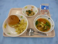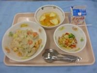 ☆パクパク給食・給食委員が考えた献立 ・野菜たっぷりタンメン ・牛乳 ・ジャンボぎょうざ ・杏仁豆腐