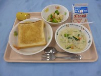 ・ごはん、じゃこ大豆 ・牛乳 ・切干大根のたまごやき ・小松菜とツナの磯あえ ・沢煮椀