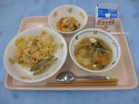 牛乳 さんまのかば焼き丼 わかめの和えもの じゃがいものみそ汁