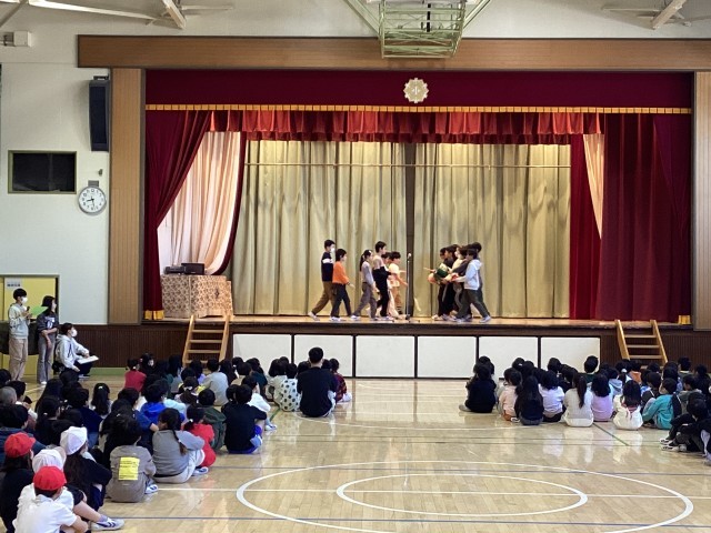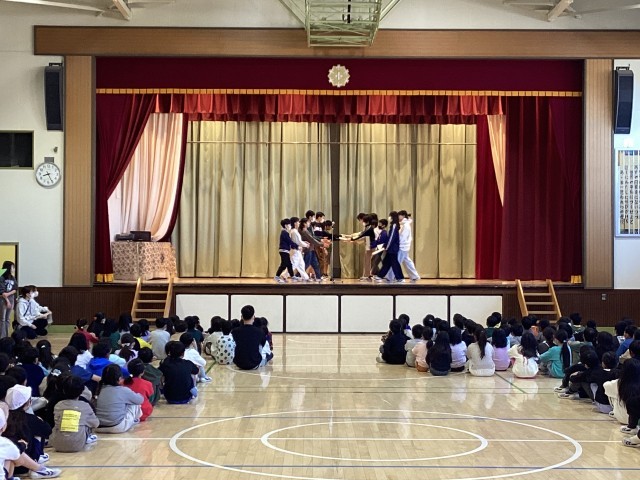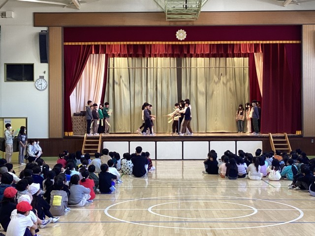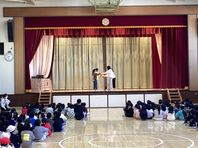 これは、本一色小学校のトップに立っていた6年生が卒業するため、来年6年生になる5年生へと役割をパスする集会です。