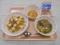 ・豆腐の中華丼・切干大根とハムの中華あえ・春雨スープ・牛乳