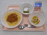 ・スパゲッティミートソース・ツナと大根のサラダ・こまつなケーキ・牛乳
