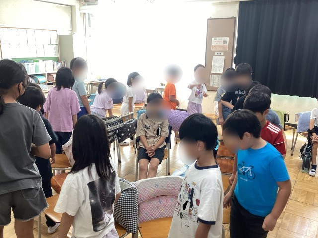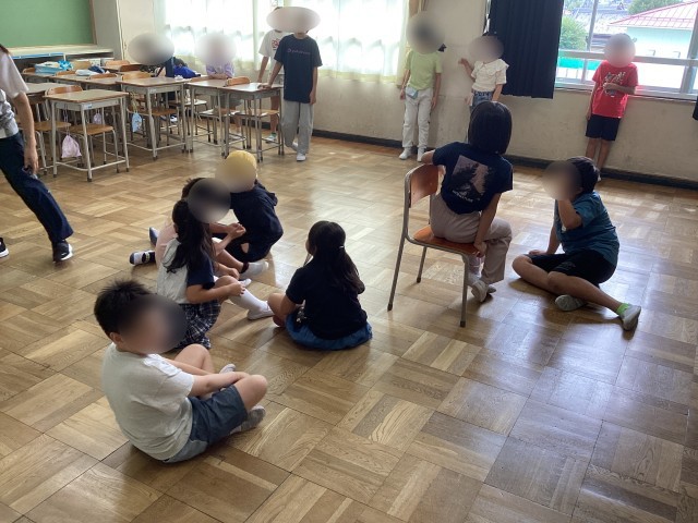本日は、6年生が考えた遊びをこじか班で行いました。3班、4班、5班では「イス取りゲーム」、「ばくだんゲーム」、「四つ角」を行いました!