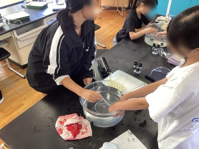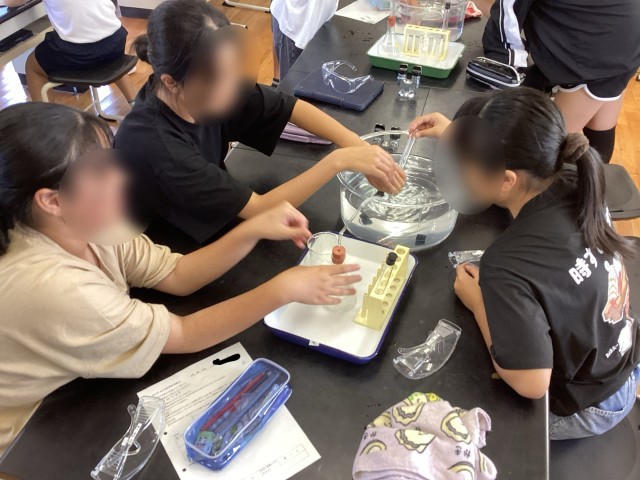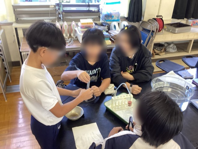 本日の理科では、炭酸水に溶けている気体について調べました。火のついた線香で酸素かどうかを調べ、石灰水で二酸化炭素かを調べました!