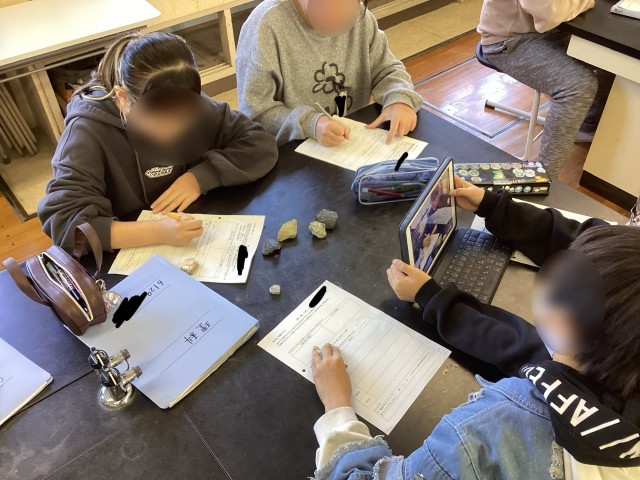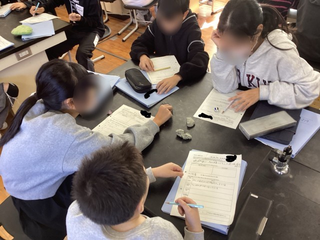 6学年の理科では、土地のつくりについて学習しています。今回は、堆積岩を観察しました!