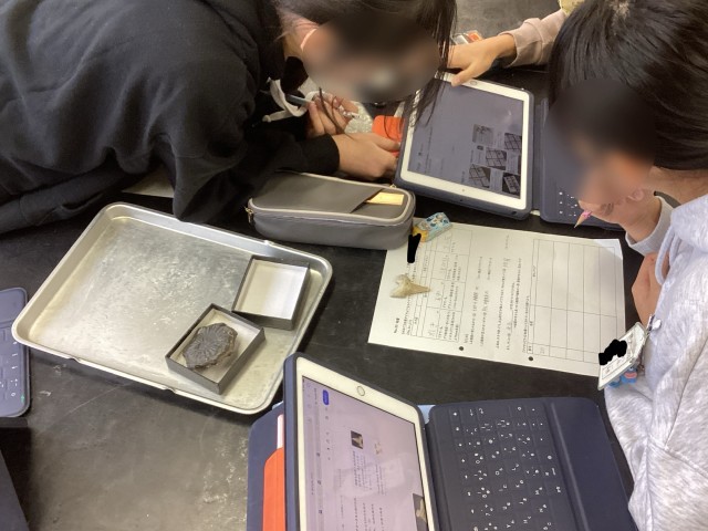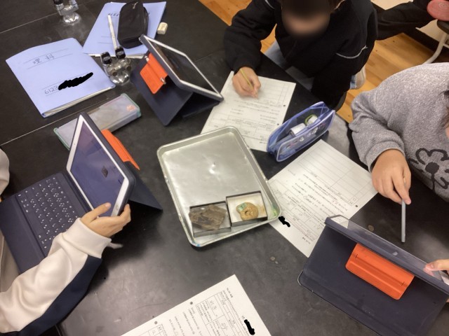6学年の理科では、地層について学習しています。今回は化石を観察して、自分たちでなんという化石なのかを調べました!