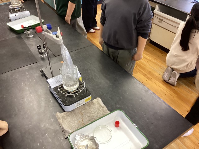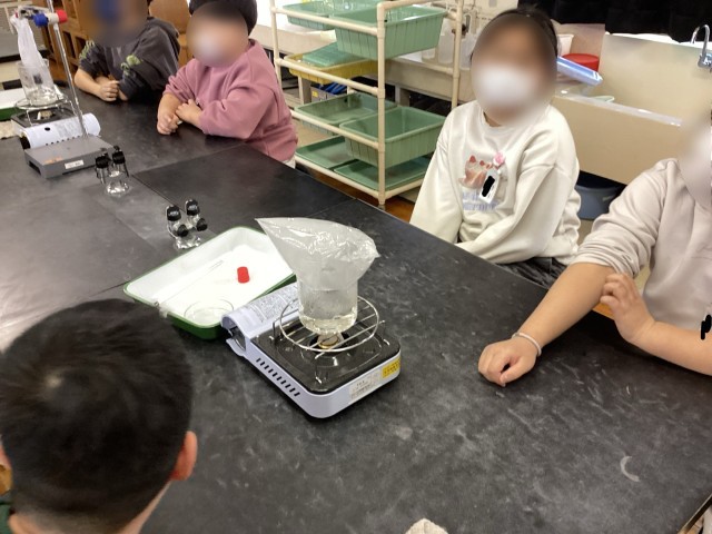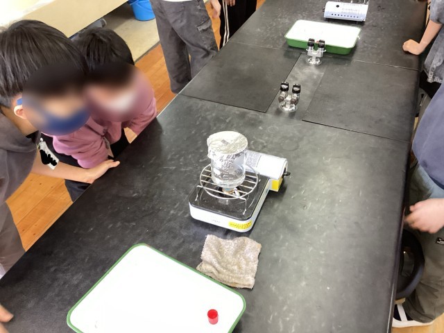 4学年の理科では、水について学習しています。今回は、湯気の正体と沸騰しているときに出てくる泡の正体について調べました!