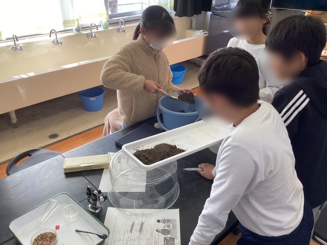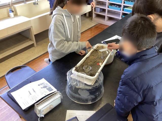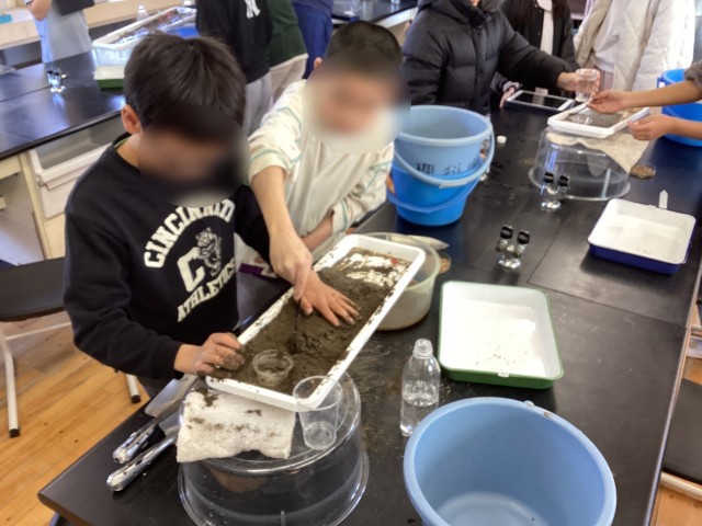 5学年の理科では、流れる水によって大地がどのようになるか学習しています。今回は、川を再現して水を流して調べました!