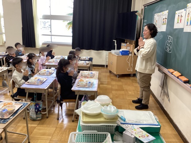 1年生も初めての給食です。ドキドキしていましたが、ほとんどの子がおかわりをして、先生たちがびっくりするほどでした。