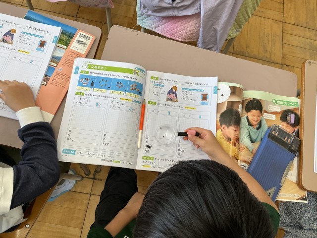 3年生理科 公開日 2026/04/23 更新日 2026/04/22 できごと 3年生理科「植物の育て方①」では、これから育てる【ヒマワリ】と【ホウセンカ】の種を観察しました。虫めがねを使って、大きく見て観察しました。 いいね(0) 3年生 理科