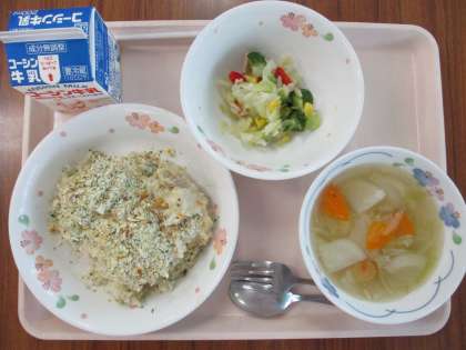 今日のシーフードドリアは、バターで炊いたご飯に手作りホワイトソースをかけ、パン粉やチーズをかけて焼きました。