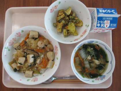 今日の大豆のカリカリ揚げにはしらすが入っています。小魚は丸ごと食べることができるので、より多くカルシウムを摂ることができます。