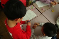 正多角形の作図は5年生で学んだ内容ですので、発展的な図形に挑戦です。ヒント動画を見て、「あぁ〜!」と声をあげていました。