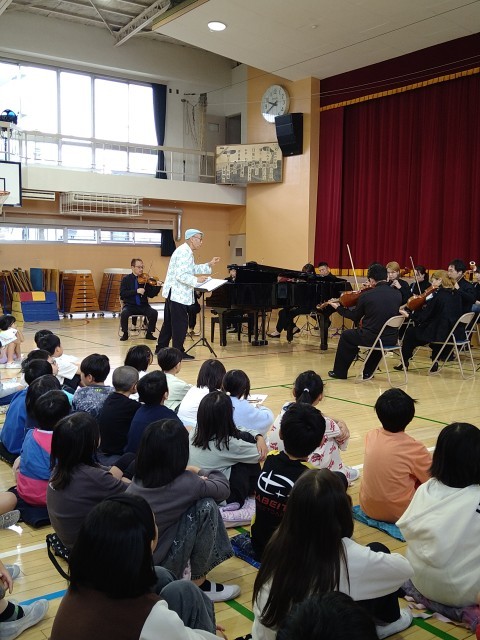 笑顔と学びの体験プロジェクトで、青島広志ブレーメンオーケストラが来てくださいました。