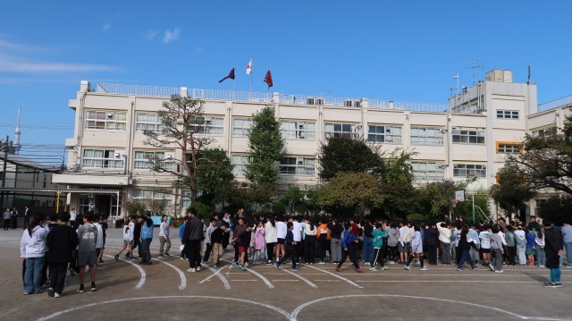 全校写真の準備です。この後クラス写真、人文字入り航空写真を撮ります。どんな写真になるかな。