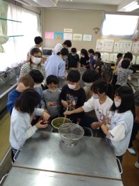 ひまわり学級で育てた枝豆を3年生と一緒にゆでました。