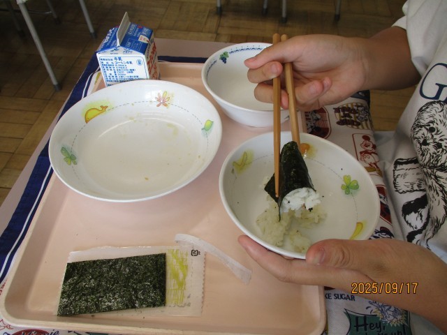 9月17日の給食は、おはしチャレンジ2日目でした。
