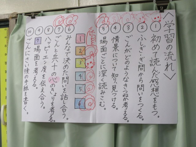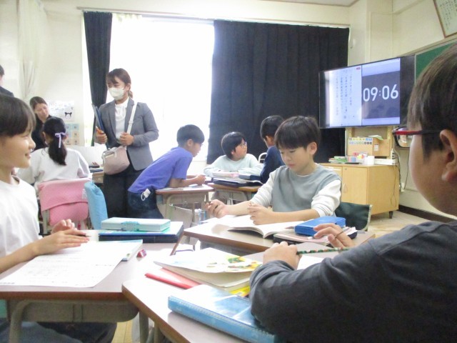 4年生の国語科「ごんぎつね」の授業を校内で見合い、「考えをもつこと」「考えを表現すること」に焦点を当てて、勉強会を行いました。子ども達は、物語の内容を読み取り、意見を交流することができていました。講師の先生からは、よりよい授業のための指導・助言を受け、よい時間をもつことができました。