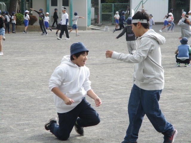 今日の集会で鬼ごっこをしました。集会委員会の子ども達がゾンビのお面をつけて、鬼役となり、他の子ども達は、捕まらないようにして走り回りました。また、校庭に体を動かす「しかけ」を設置していて少しずつ増やしていく予定です。楽しみながら体力を向上させてくれたら嬉しいです。