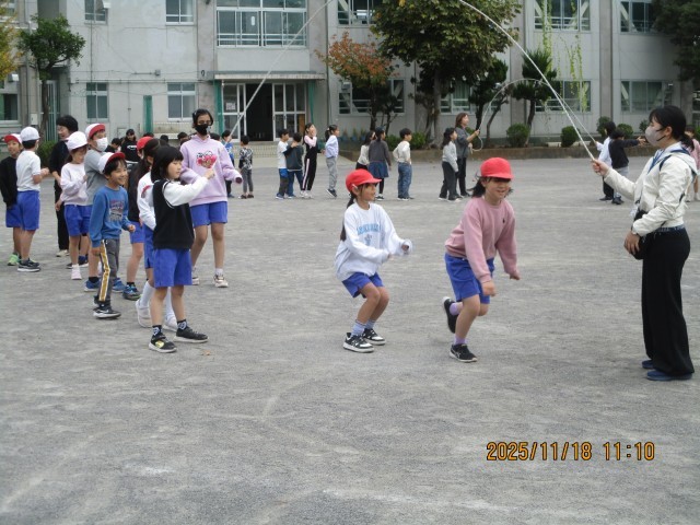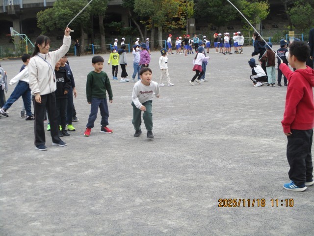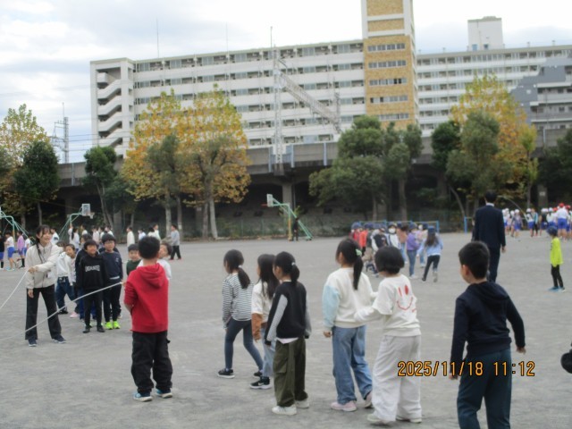 中休みの時間に、全校で運動する「いきいきタイム」。現在は、長縄に励んでいます。今日から寒い日が続くようですが、体を動かし、脳も刺激してすくすく育ってほしいと思います。