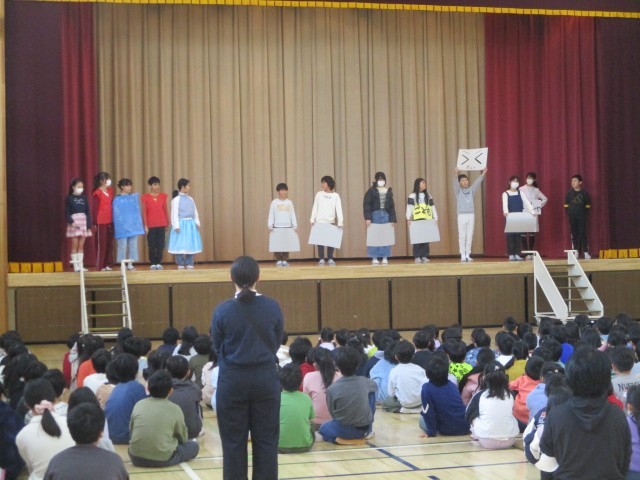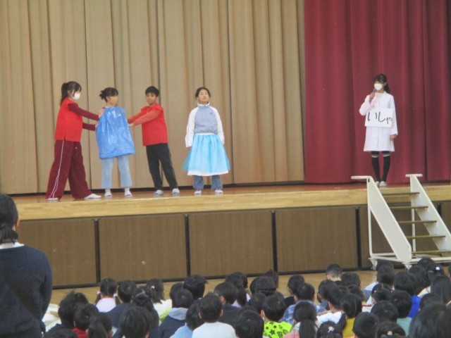 現在は、授業でもタブレット、家庭ではスマフォを使用する機会が多くなっていることを受けて、目を大切にすることや目の疲れの取り方について、分かりやすく発表しました。保健委員のみなさん、頑張りましたね!