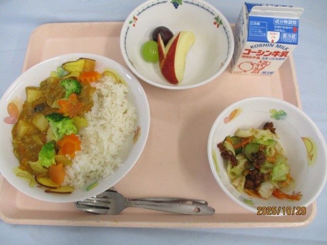 10月28日から11月7日の間に、みなみフェスの演目のイメージに合わせた給食を作りました。調理員の手作業で型抜きやトッピングをして形を作ったかいもあり、子どもたちも楽しみながらよく食べていた様子です。