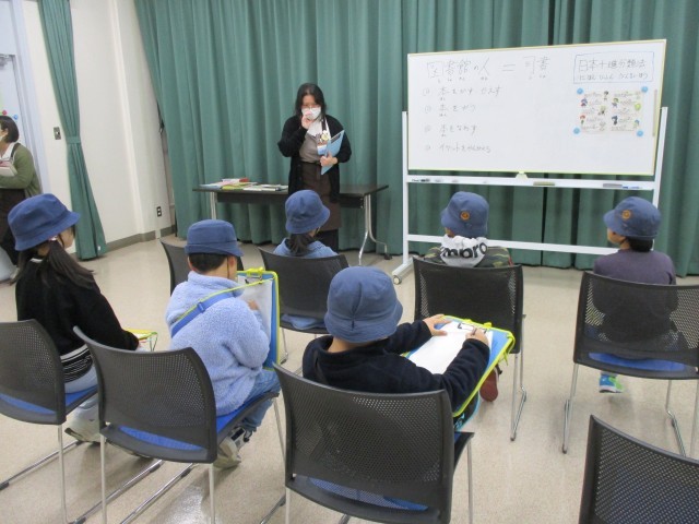 生活科見学として、地域の区民館や図書館に見学に行きました。今日は小松川図書館に出かけ、本の管理や貸し出しについてお話を聞きました。対応してくださった係の方、ありがとうございました。