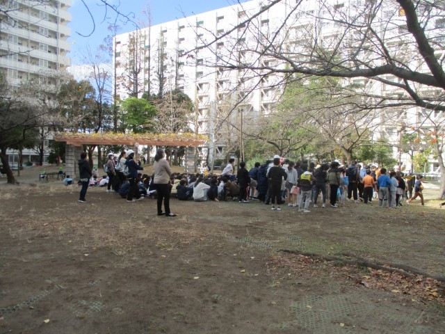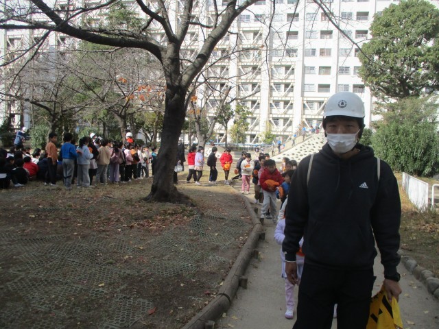 毎月行う避難訓練ですが、様々な状況を設定して行っています。今日は、火災対応でした。通常は校庭に避難しますが、学校敷地内では安全が確保されない場合の想定で、本校では平井3丁目公園に全校避難します。公園までの道程で私語も少なく、立派な行動でした。
